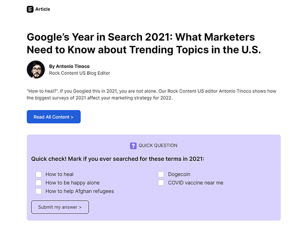 Estamos falando do Ion, a ferramenta da Rock Content que facilita a construção de experiências interativas. Então, é claro que não poderíamos deixar de adicionar alguns momentos de interatividade na newsletter.