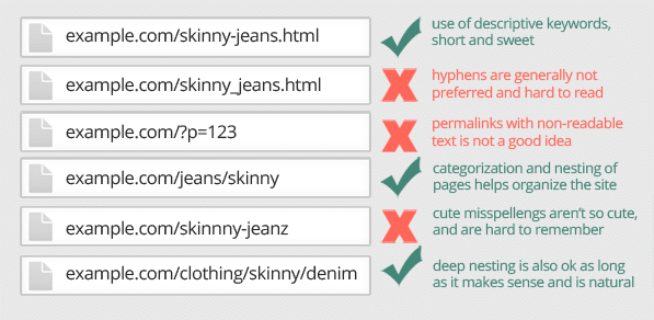 - Use a simple structure that includes keywords and is easy for both users and search engines to understand.