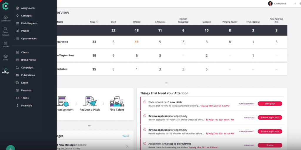 Like Contently, ClearVoice operates as a premium content facilitation network for enabling content creation and positive client-creator connections. Clients post their projects and state their needs, and then Clear Voice matches that project with appropriate talent.