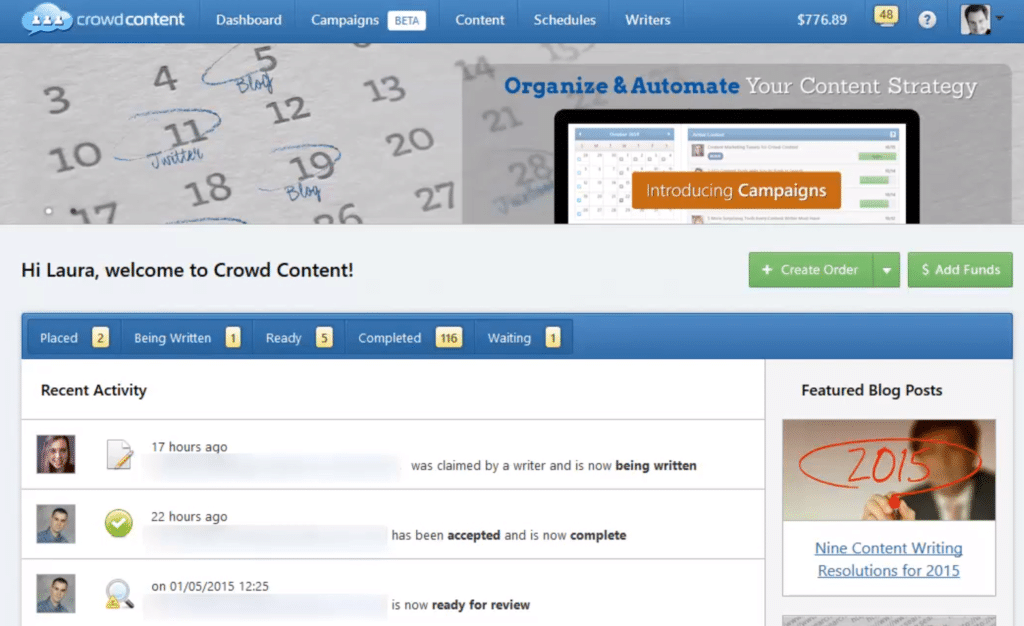 Like similar content creation platforms, Crowd Content aims to be user-friendly and streamlined. Simple client dashboards take the guesswork out of creating, posting, and pricing orders.