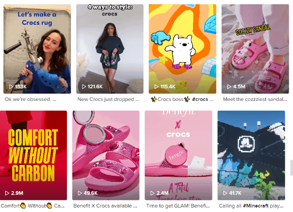 The brand’s TikTok account is also used to showcase new products and launch challenges, as it was the case of #ThousandDollarCrocs, where users were encouraged to “rate” their crocs in the most sophisticated way possible, generating over 3 billion video views in this campaign.