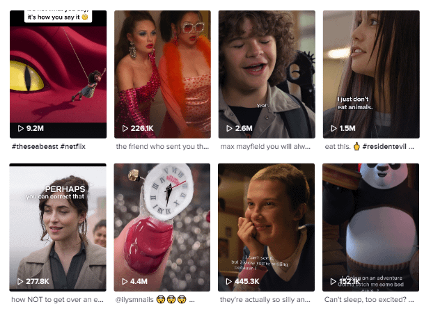 This makes the audience feel special when having access to unique content on the platform. In addition, Netflix’s profile on TikTok bets on quick games with the public and fun cuts from the series to increase engagement and organic sharing of its content.
