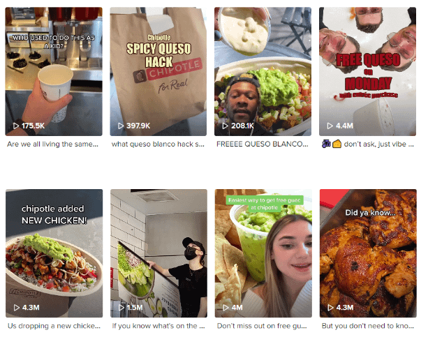 Chipotle is commonly remembered by marketers when it comes to content on TikTok. No wonder the brand was the first major restaurant chain with an official TikTok account in 2019, using a solid strategy with videos, memes, and funny content, and making the brand relevant to a younger audience.