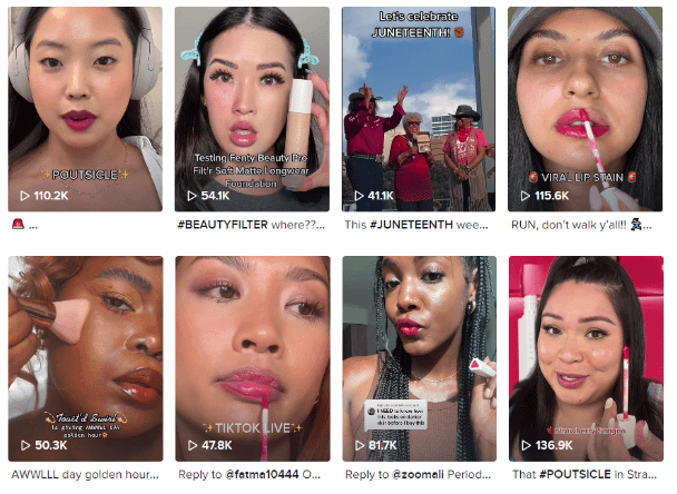 Fenty Beauty bets on one of the most popular and effective types of content in the beauty segment: tutorials. The brand on TikTok invests in content to show makeup tutorials, product reviews, wear tests and brand launches.