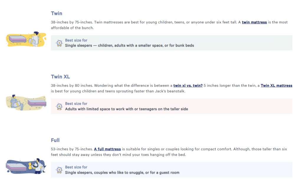 One corner piece is its comprehensive mattress buying guide. Branching out from there is interactive content that lets anyone take a mattress quiz and gain more information.