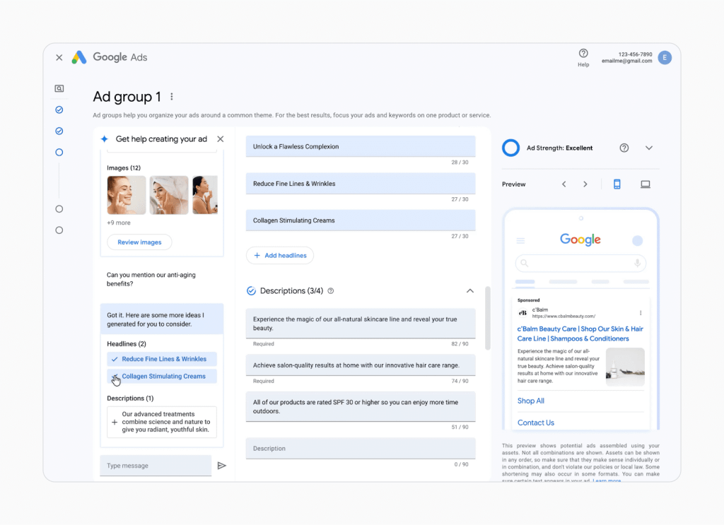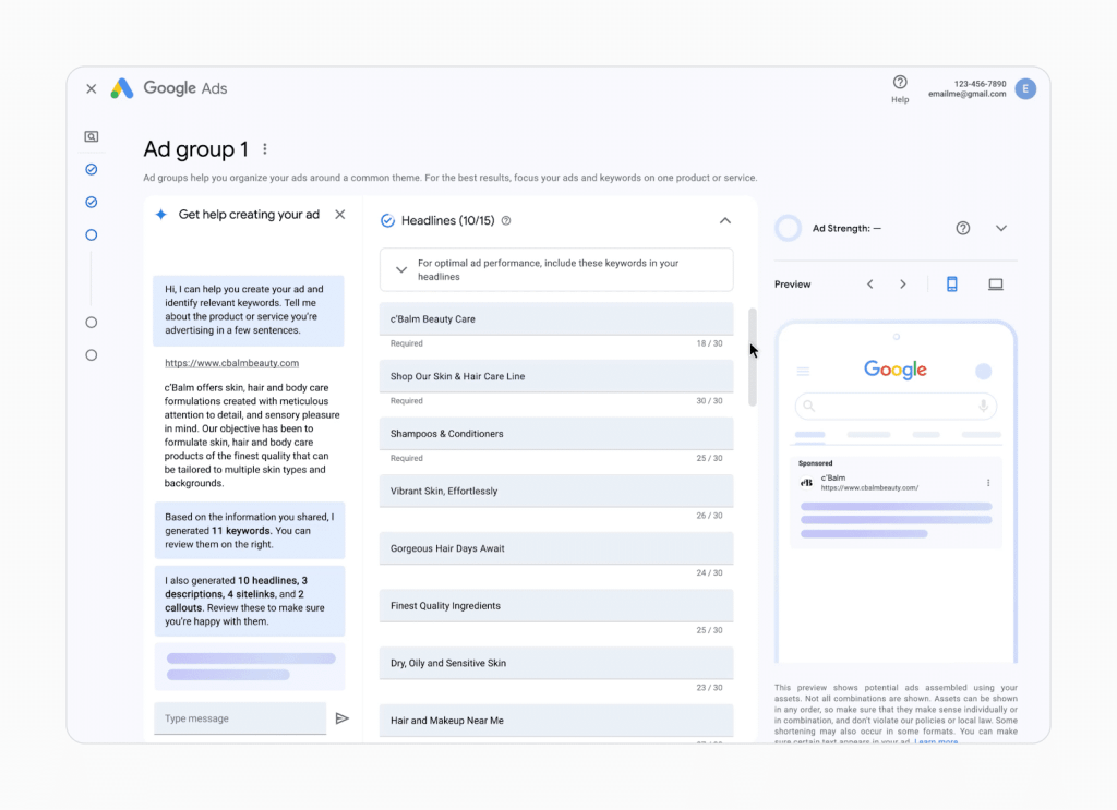 Google Ads is introducing a new conversational interface designed to streamline your creation and suggest the best titles, descriptions and keywords for your campaign through Artificial Intelligence.