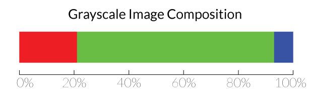 To understand why green can be such a prominent color, we should first look at the environment in which we evolved. Green is a huge portion of the electromagnetic radiation that the Sun emits. The spectral irradiance of the Sun actually peaks right in the band of wavelengths that corresponds to what we call green. Our planet is covered in plants that get their food through photosynthesis, and photosynthesis takes advantage of chlorophyl, a chemical that just happens to reflect green light. When you combine a very green sun with surroundings that mostly reflect green, you end up with a world bathed in green light. This means our eyes evolved to be very sensitive to green light. If you look at the response curves of our foveae, you can see that our green cones are more sensitive (especially in the green wavelengths) than either our red or blue cones: You can also see this reflected in the CIE color space. There is a huge portion of the space devoted to what we typically categorize as green: This means that we see a really wide range of greens, and they can all appear highly saturated. It also means that green (especially pure green) can appear as a really bright color. So bright that if you convert a three channel RGB image to grayscale, the multipliers on each channel (21% red + 72% green + 7% blue) mean that green can contribute almost three quarters of the brightness in the image.