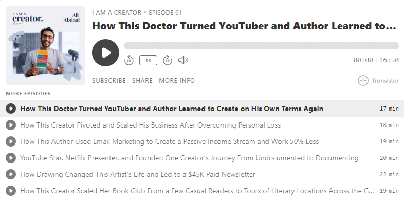 Companies can also leverage influencers to create a lineup of interesting podcasts as ConvertKit does: