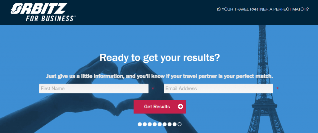Example of an interactive quiz designed by Orbitz