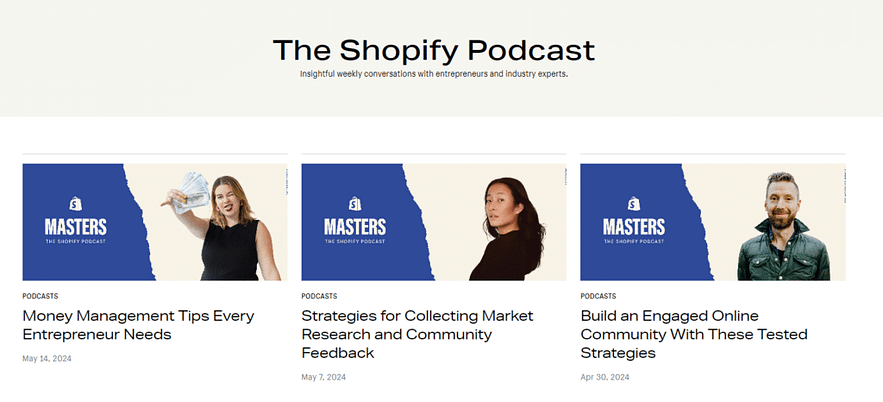 Shopify’s podcast, “Shopify Masters,” has gained popularity for several reasons: