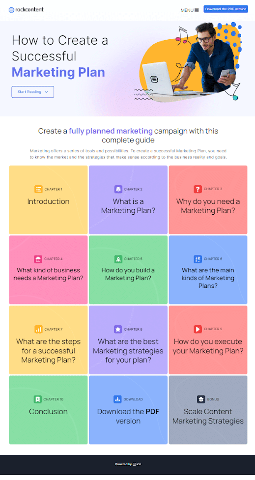 For the How to Create a Marketing Plan one, we divided the chapters into blocks with other interactive elements inside.