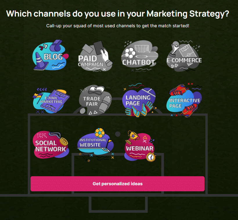 After selecting the main channels they work in, similarly to soccer coaches, the visitor gets personalized advice and suggestions to create successful campaigns, based on the inputs provided by the previous page.