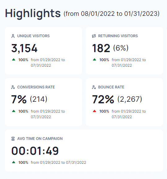 In the end, we are able to see how the page performed in the creative dashboard, which gives us insights on the results and if needed, we can dive deeper into the page to discover where people interacted the most or the least, so we can adapt the next wave accordingly.