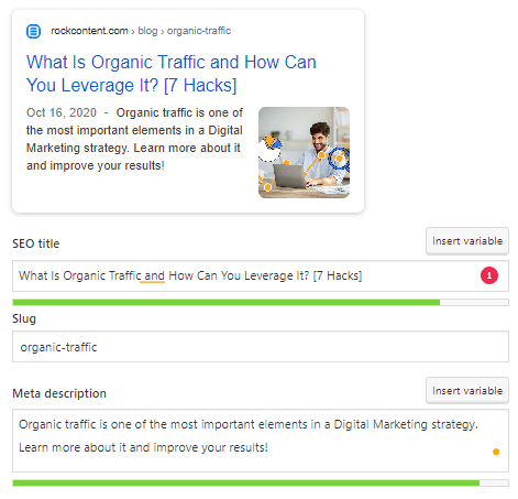 You can customize the title of an article or page, as well as the meta description that appears on the search engine results pages (SERPs).