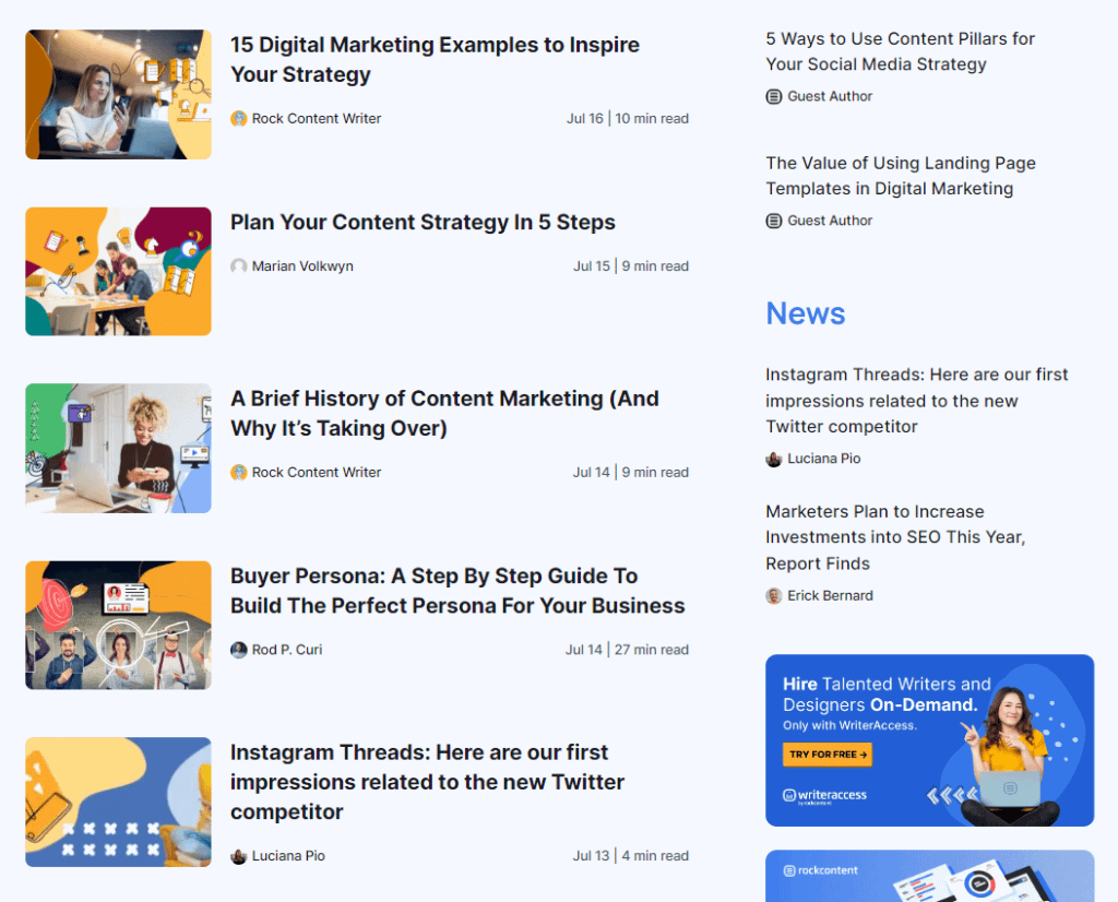 - Better Brand Recognition ‒ Growing your brand is much easier when people come to your blog to find out more information about a specific topic. Sites like HubSpot and Rock Content are good examples, as authorities within the digital marketing niche, they have excellent brand recognition within their industry.