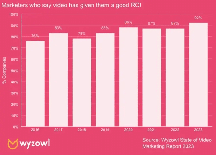 Going back to the surveys, 92% of video marketing experts claim that they get good ROI from their video efforts. Back in 2016, only 76% of marketers felt that way.