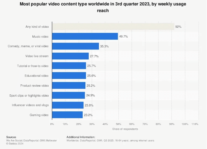 Short-term content (videos under 60 seconds in length) leads in most engagement metrics. Once clicked, users engage with these videos more. This boosts ROI, click-through rates, and other important metrics.