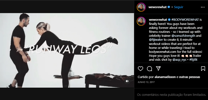 Social Media Influencer Danielle Bernstein, while promoting her own brand’s Bodyworewhat, included bottles of FIJI water in her workout photos and videos for followers. She further promoted the water brand to her audience by creating posts reminding them of the importance of always staying hydrated during and after workouts and providing a discount code they could use for home delivery.