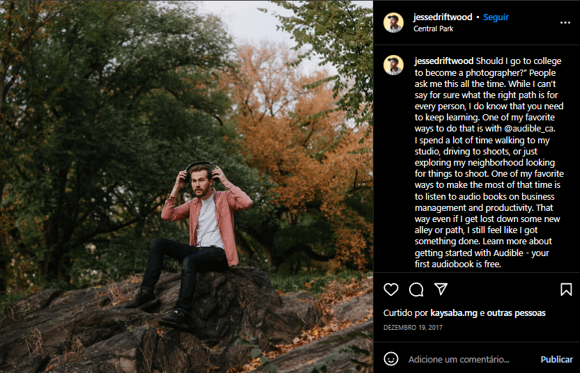 An example of such marketing is when one influencer created a post mentioning how he educates himself by listening to books and podcasts on various topics, such as business management, as he travels from one location or job to the next. It is a natural, genuine post that just happens to mention the brand.